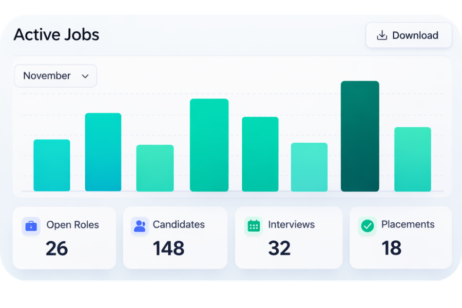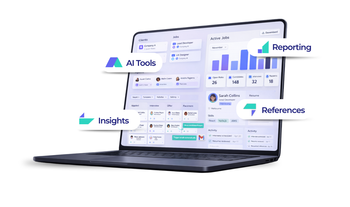 Manage jobs, track activity and let AI handle the admin so you can focus on placements.