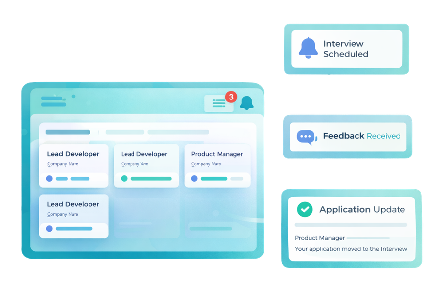 Receive updates when your application progresses, feedback arrives or interviews are scheduled.